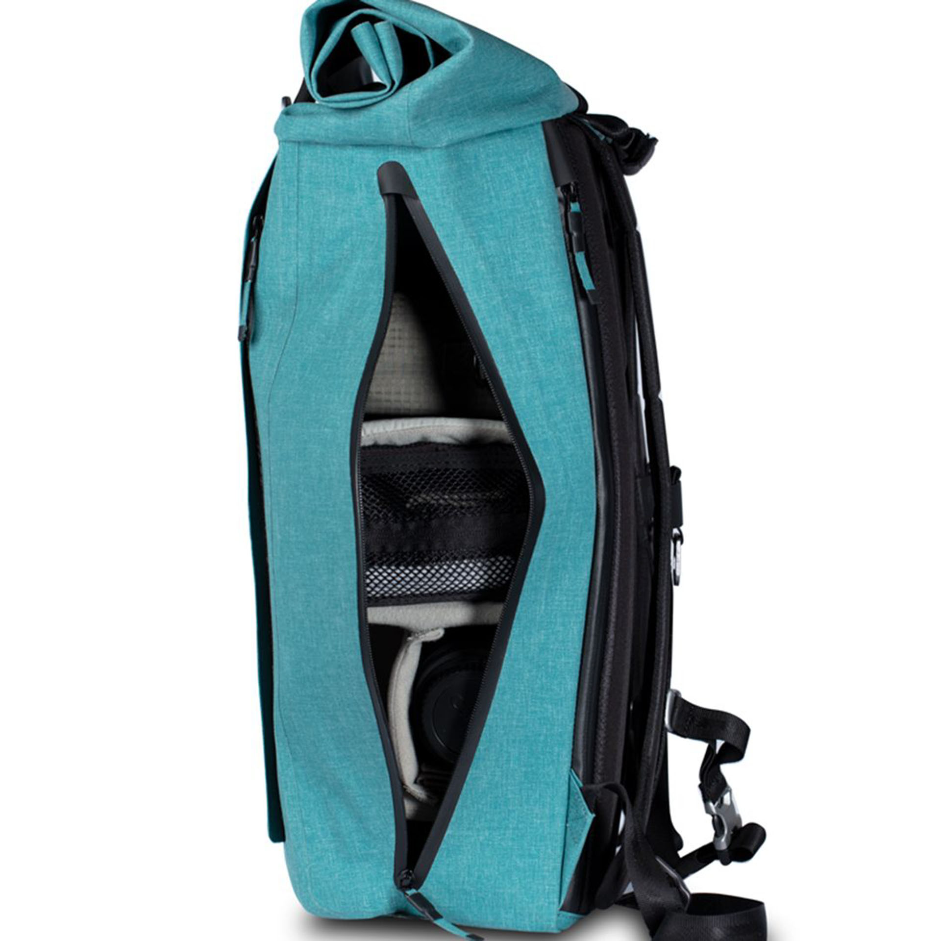 ด้านบนเป็นแบบ Roll-Top ทำให้สามารถขยายเพิ่มความจุกระเป๋าได้สะดวกยิ่งขึ้น และซิปที่สามารถหยิบของได้จากทั้ง 2 ด้าน