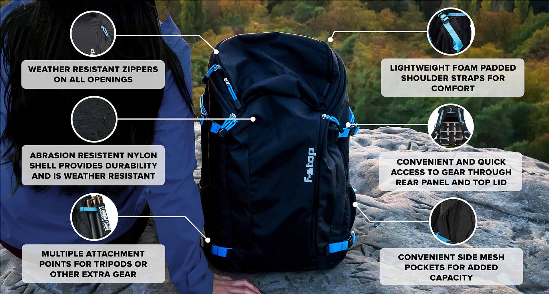 กระเป๋า F-STOP ผลิตจากวัสดุที่กันน้ำ และทนต่อการใช้งานแบบสมบุกสมบัน ในทุกสถานการณ์ ช่วยให้ช่างภาพหมดห่วง และมั่นใจได้ว่าอุปกรณ์สำคัญจะได้รับการปกป้องเป็นอย่างดี
