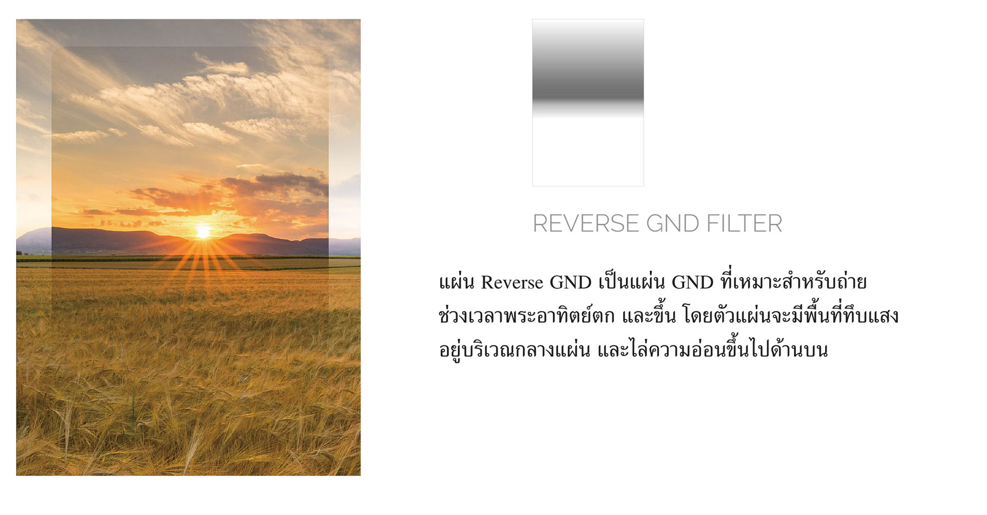NiSi Nano IR Reverse GND คือฟิลเตอร์ลดแสงแบบครึ่งซีก (Graduated Neutral Density Filter) ที่ได้รับความนิยมสูงในวงการถ่ายภาพ โดยเฉพาะสำหรับการถ่ายภาพทิวทัศน์ในช่วงแสงที่คอนทราสต์สูง เช่น พระอาทิตย์ขึ้นหรือพระอาทิตย์ตก ฟิลเตอร์ชนิดนี้จะช่วยลดความสว่างของส่วนที่สว่างเกินไป เช่น ท้องฟ้า หรือบริเวณที่โดนแสงโดยตรง ทำให้ภาพมีความสมดุลของแสงมากขึ้น และสามารถเก็บรายละเอียดในส่วนที่มืดได้ดีขึ้น