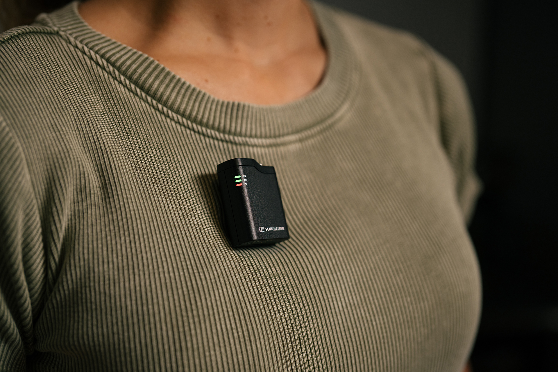 - Lockable external 3.5 mm TRS connector on each microphone for secure connection to optional Sennheiser lavalier mics