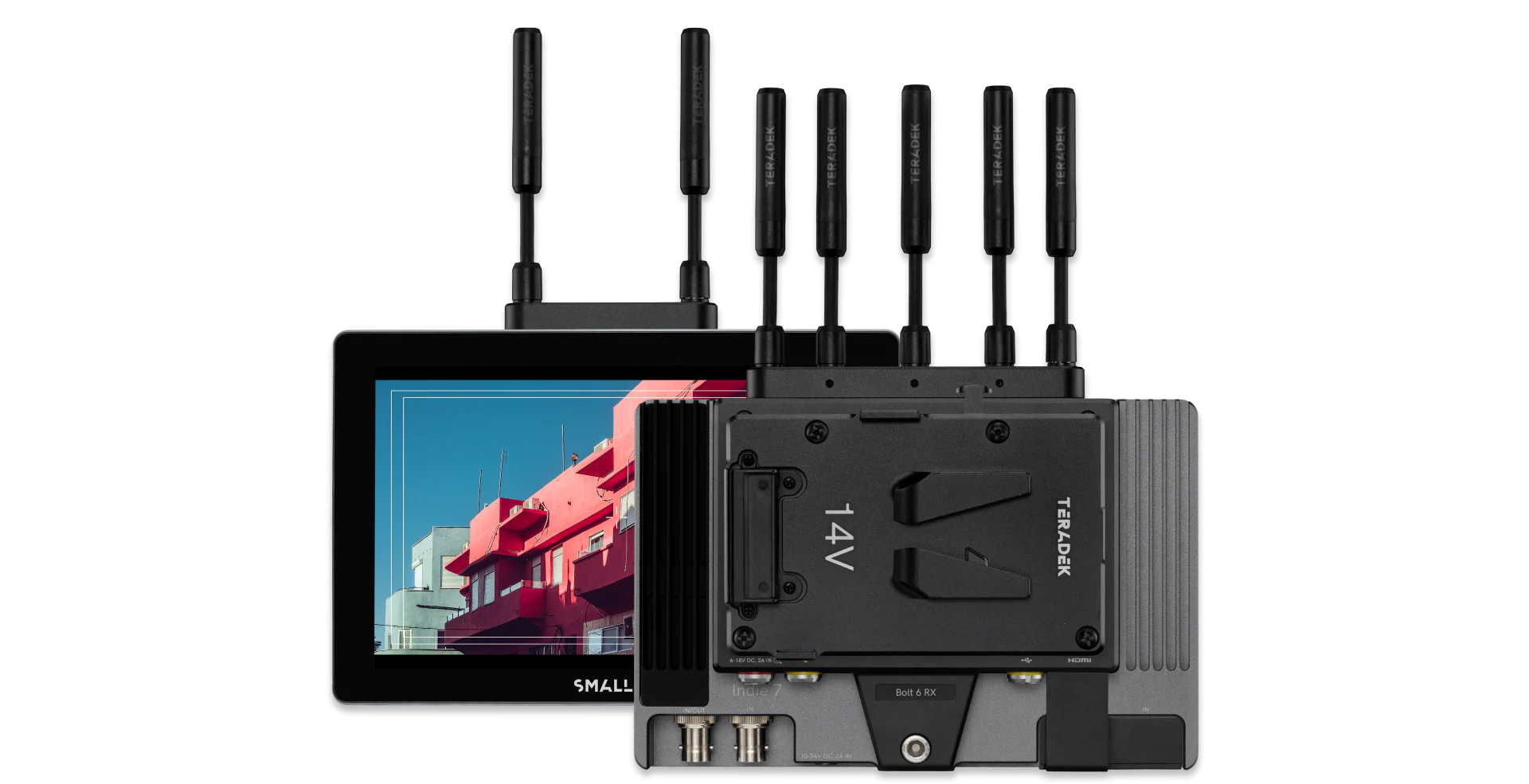 Receive pristine wireless video from any Bolt 6 or Bolt 4Ktransmitter at a distance of up to 750ft (228m) or 1500ft (457m). This hardware addition to Indie 7 attaches to the back of the monitor for integrated, cable-free workflows. Included with Gold or V-Mount power options.