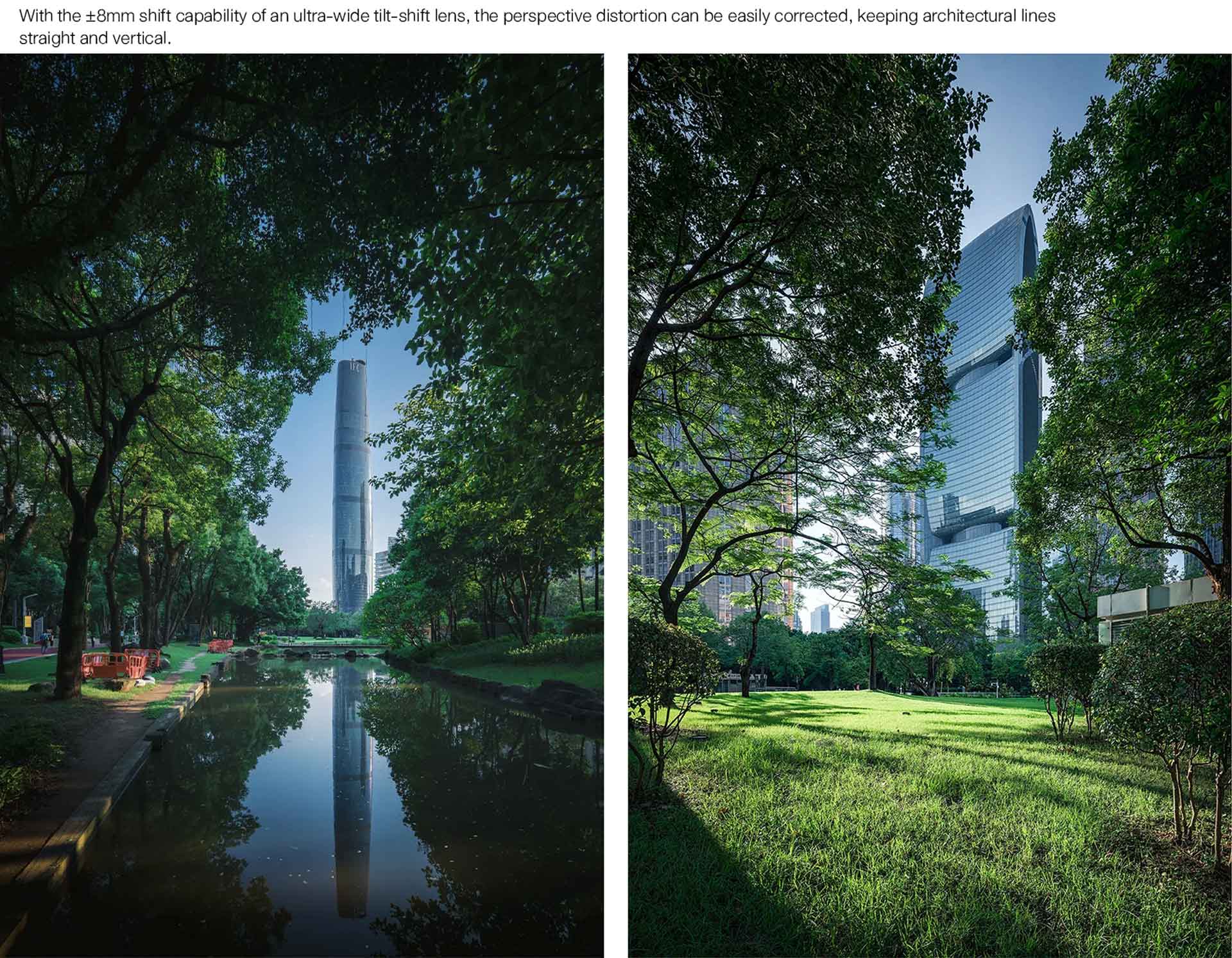 การออกแบบทางออปติคอลอย่างพิถีพิถันเพื่อมอบประสิทธิภาพการควบคุมแสงและสีสันที่โดดเด่น ทำให้เลนส์รุ่นนี้ประกอบด้วยการใช้ชิ้นเลนส์ Aspherical (ASPH) และการเคลือบผิวเลนส์แบบ Multi-layer ที่มีคุณภาพสูง ช่วยให้เลนส์สามารถลดความคลาดเคลื่อนของสี (Chromatic Aberration) และควบคุมแสงแฟลร์ (Flare) รวมถึงแสงหลอน (Ghosting) ได้อย่างมีประสิทธิภาพสูงสุด ผลลัพธ์ที่ได้คือภาพถ่ายที่ให้คอนทราสต์ที่หนักแน่น และมีสีสันที่เที่ยงตรงเป็นธรรมชาติ แม้จะถ่ายในสภาพแสงที่ย้อนหรือมีแหล่งกำเนิดแสงที่สว่างจ้าก็ตาม นอกจากนี้ Image Circle ที่มีขนาดใหญ่ยังช่วยให้การกระจายของแสงทั่วทั้งเฟรมภาพมีความสม่ำเสมอ โดยไม่เกิดขอบมืด (Vignetting) ไม่ว่าจะใช้งานฟังก์ชัน Tilt หรือ Shift ก็มั่นใจได้ว่าทุกภาพที่ถ่ายออกมาจะมีคุณภาพสูงสุดทั้งในด้านความสว่างและสีสันที่สวยงาม