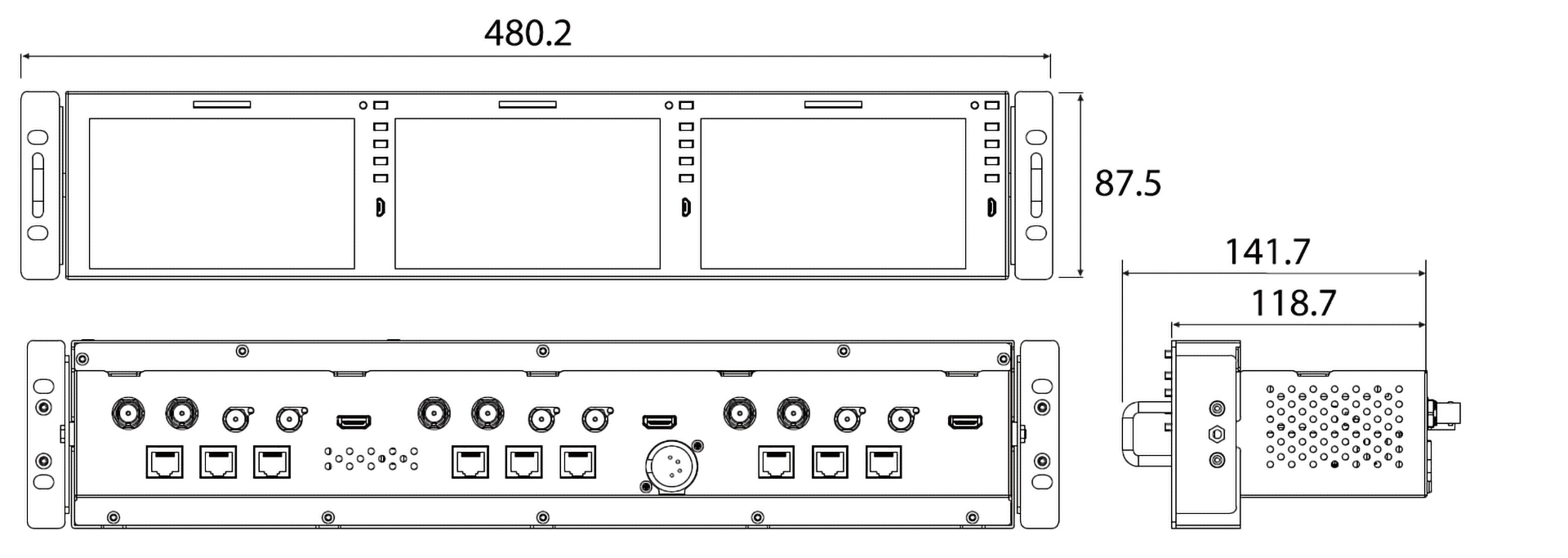 – With Rack Mount Kit 480.2 x 87.5 x 141.7 (mm) / 18.91 x 3.44 x 5.58 (inch)