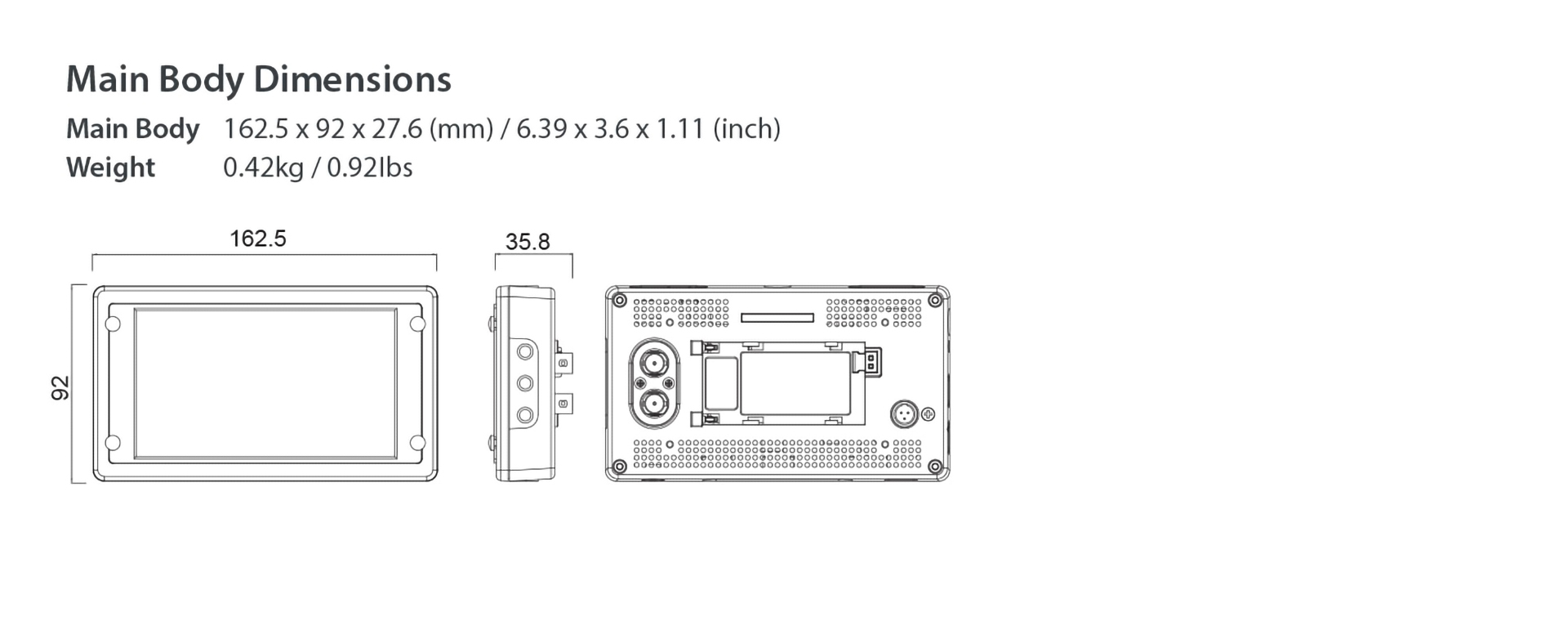 – Main Body 162.5 x 92 x 27.6 (mm) / 6.39 x 3.6 x 1.11 (inch)