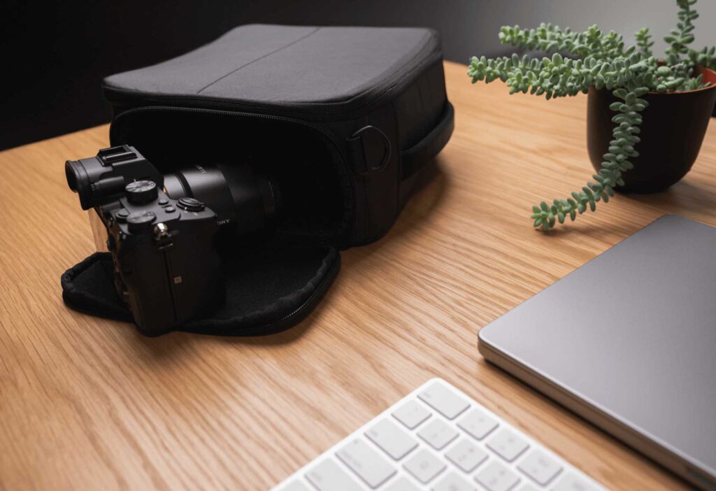 Essential Camera Cube สามารถใช้งานแยกอิสระได้ เพราะมาพร้อมฝาปิดหน้ากันกระแทก ห่วงต่อสาย Carry Strap ร่วมไปถึงหูจับรองรับน้ำหนักในตัว อีกทั้งตัวผ้ายังเคลือบกันน้ำมาอีกด้วย