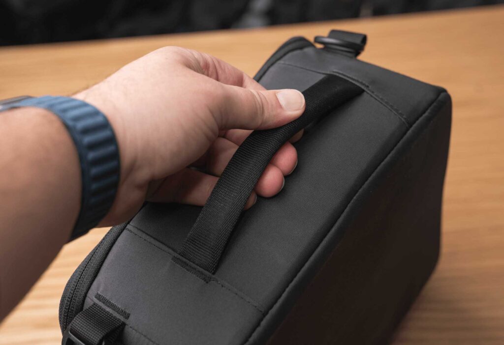 ออกแบบให้มีหูหิ้วในตัว ที่มีความหนา รองรับน้ำหนักกล้องและเลนส์ได้เป็นอย่างดี อีกทั้งยังทำให้เราสามารถแยกใช้งาน Wandrd Essential ได้อย่างอิสระ